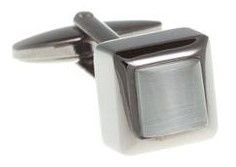Bílé manžetové knoflíčky kostka v šedém kovovém rámečku