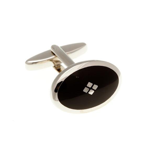 Černé manžetové knoflíčky s stříbrným motivem diamantu ze šperkařského smaltu v dárkové krabičce J.L.TOMAN.