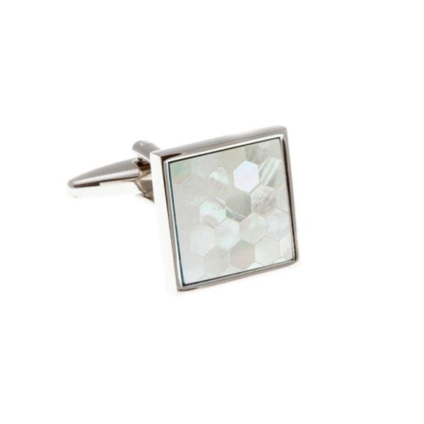 Originální bílé manžetové knoflíčky osazené přírodní perletí ze šestiúhelníků