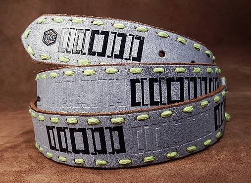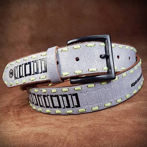Originální a unikátní luxusní kožený opasek Neon ručně vyrobený z jemné hovězí kůže s popraskaným dezénem a barevným potiskem po celé délce opasku. Výrazné, neonové ruční šití po obvodu s jemným přebrusem dodává opasku opravdový streetový look.